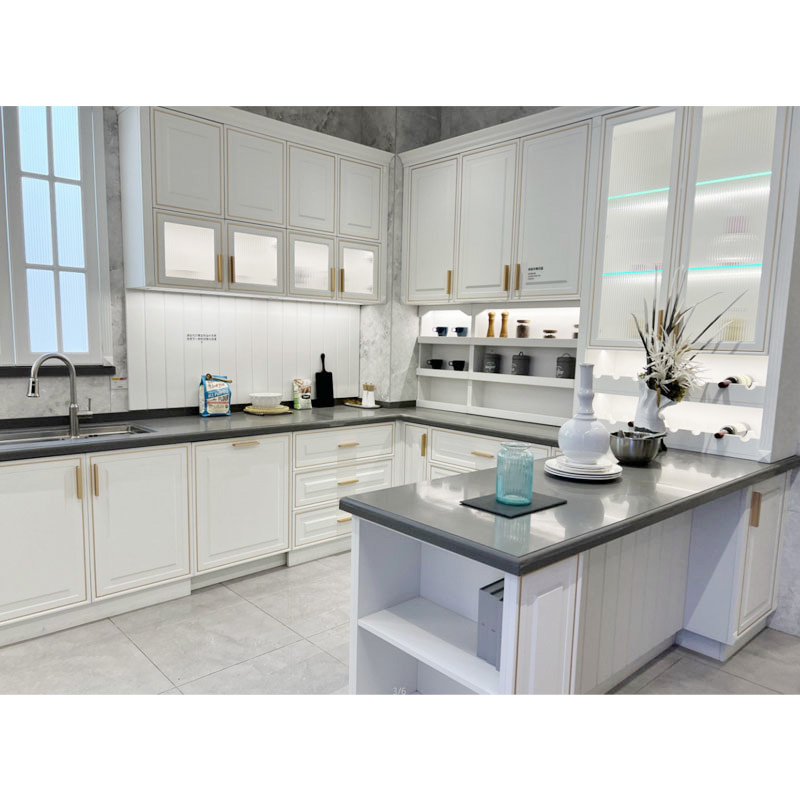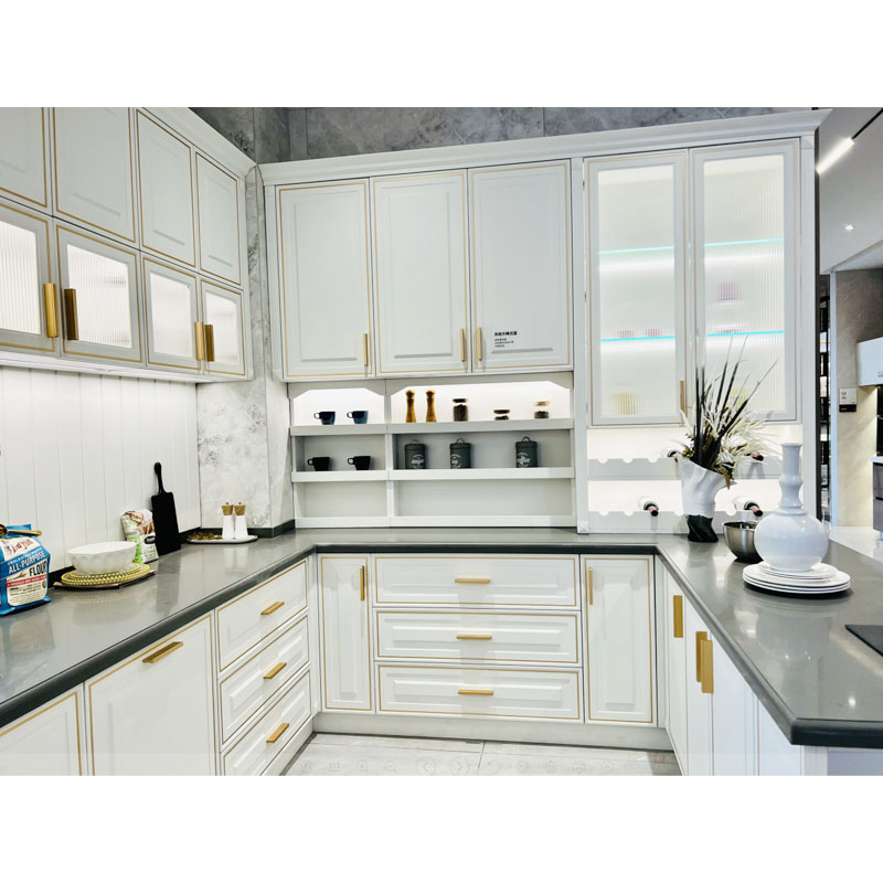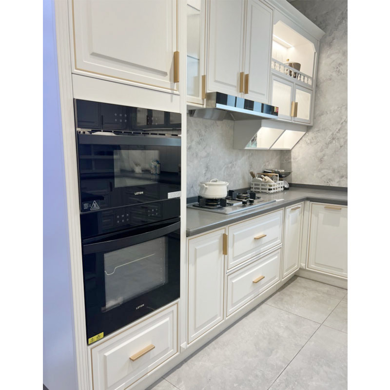 Valgeid köögikappe on ka väga lihtne oma kodukaunistamise stiiliga ühte sulatada. Sinoah valged PVC köögikapid ruudukujuliste köögikappide ustega. Valged köögikappide uksed sobivad kokku köögikappide käepidemetega kuldse tooniga, et muuta minimalistlikud köögikapid kaasaegseks ja klassikaliseks traditsiooniliseks köögiks.