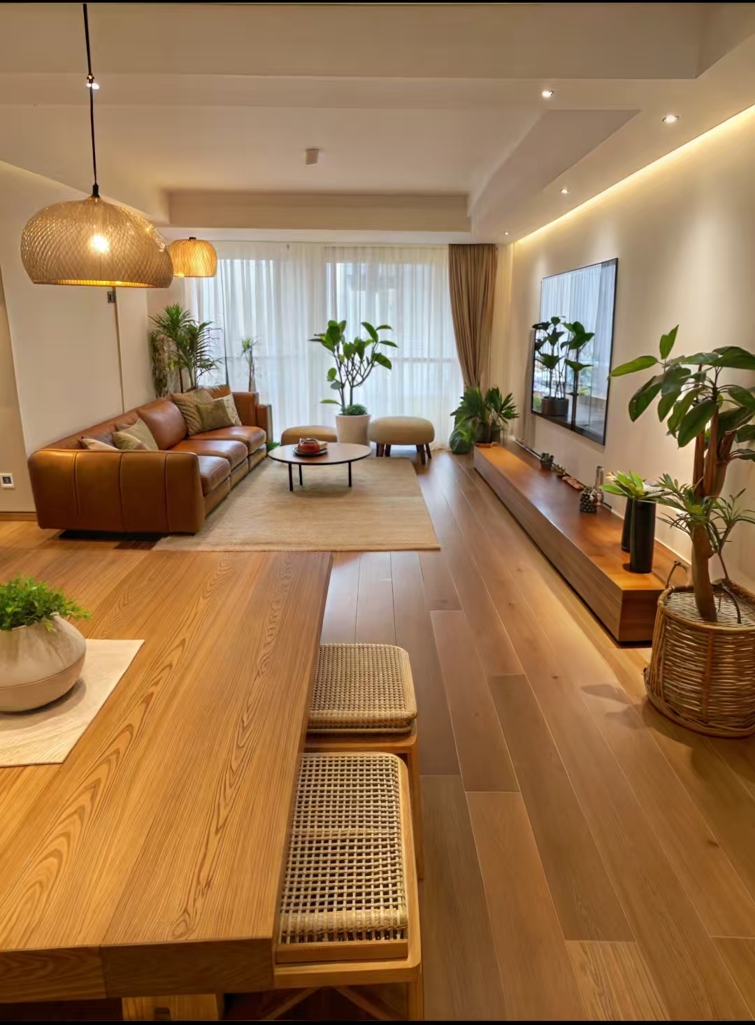 Naturaalse puidustiilis kodu on lihtne, kuid samas keerukas, iga detail voolab soojuse ja mugavusega, pakkudes teile rahulikku taandumist askeldava linna keskel.