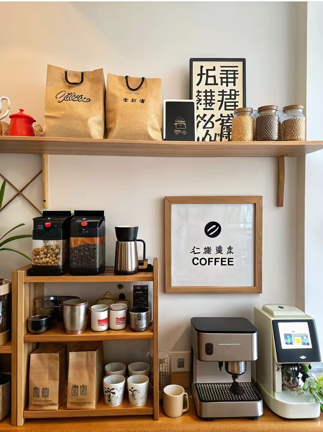 Puitriiulidel kuvatakse hulgaliselt kohviriistadele ja pakendikottidele, justkui kohvi rikkalik aroom tungib õhku, lisades sellele kodule ainulaadse maitse.